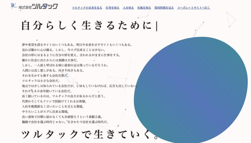 秋田県で事務機器販売を行なっている株式会社ツルタックさんの採用Webサイトを制作させていただきました。