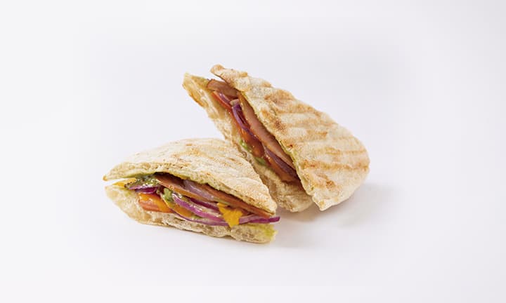 ピリ辛の特製青汁マヨネーズをパンに塗り、ハムとコクの深いチェダーチーズを一緒に焼き上げています。米粉と小麦粉を混ぜたもっちりとしたパンを使用。香ばしさが食欲をそそります。